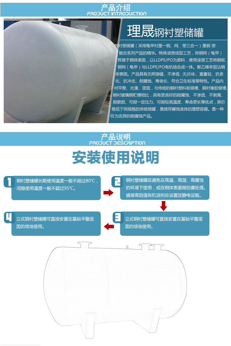 滾塑儲(chǔ)罐(聚乙烯塑料儲(chǔ)罐、鋼襯PE儲(chǔ)罐)選購(gòu)和使用說明: